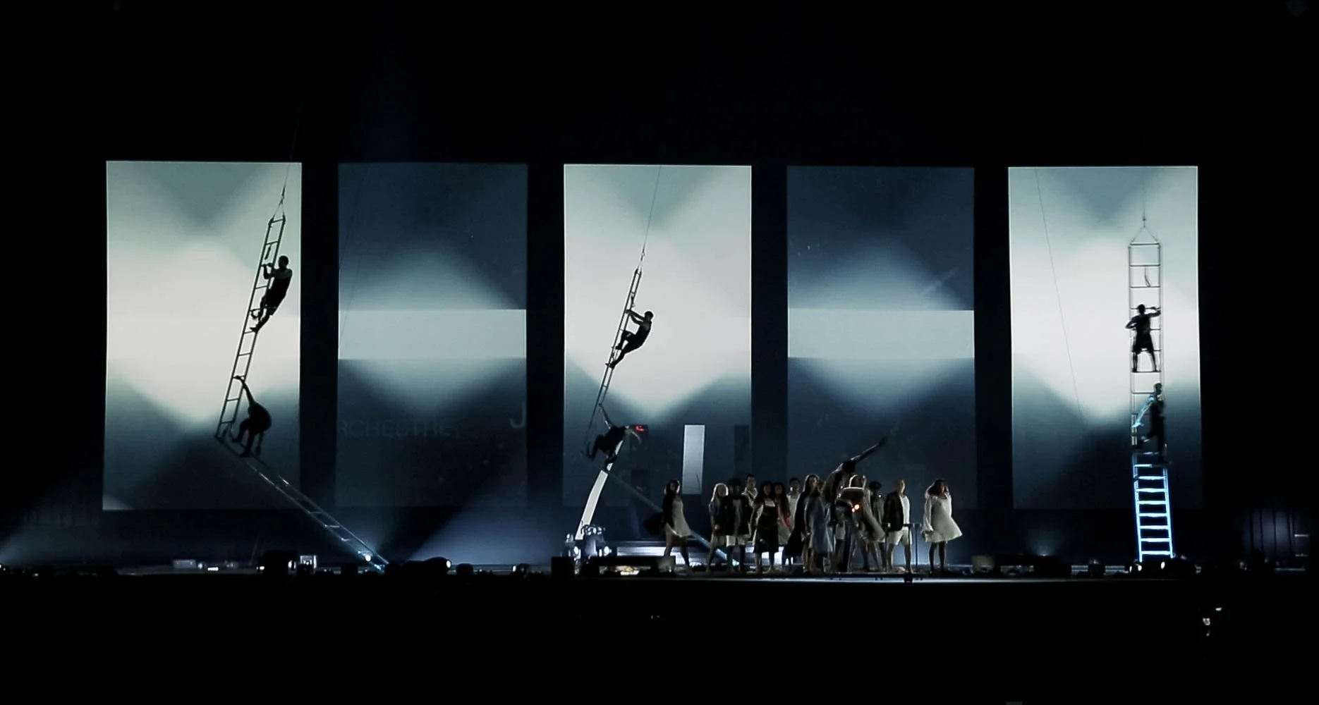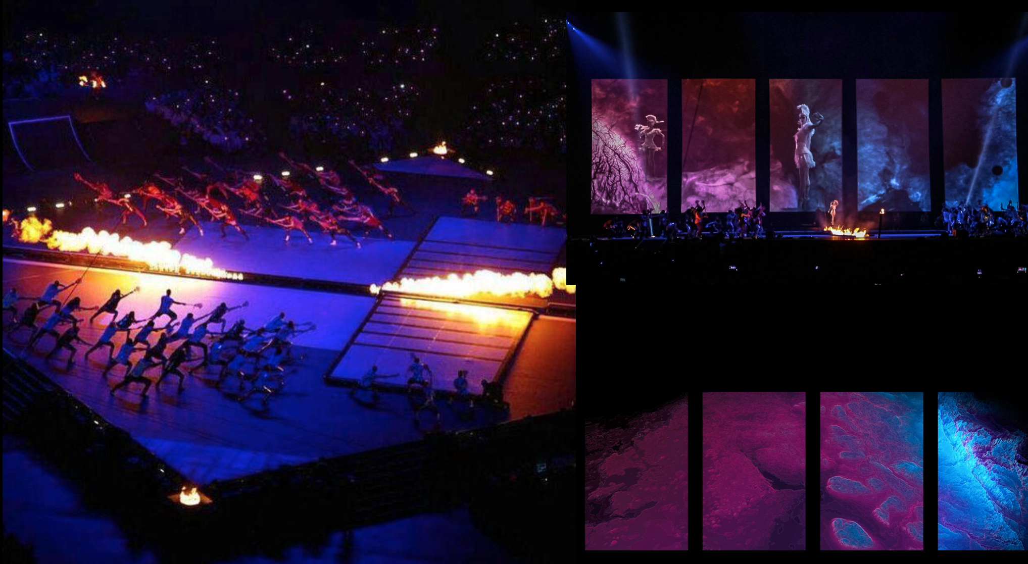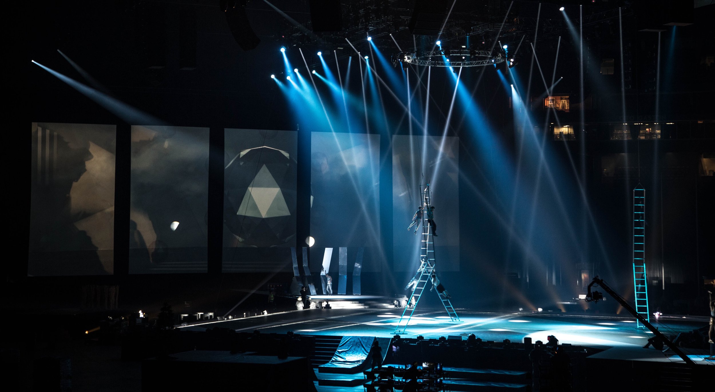 As part of the creative team, I was brought on board by Bastien and Jean Guilbert following collaborations on Cirque events in Andorra and Hong Kong. This project was their most ambitious to date, particularly in terms of projection design. Our team at Mindroots studio was working with 5 massive screens to create cutting-edge visual content, we used ultra slow-motion Phantom cameras to capture our acrobats in ethereal, godlike motion—transforming athletic performance into mythic imagery. These sequences were further enhanced with bespoke animations and thematical segments that punctuated the ceremony with moments of poetic grandeur. It was a rare opportunity to merge cinematic artistry with live performance on a monumental scale.
